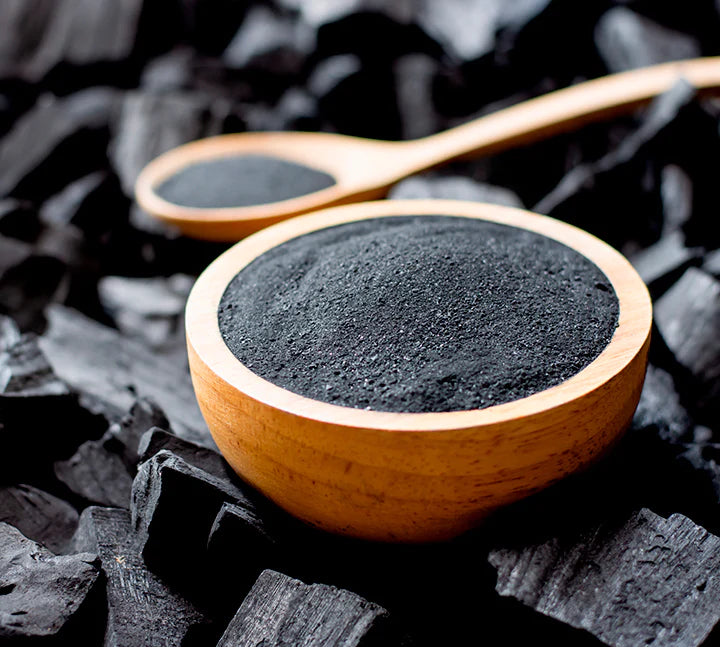 Geactiveerde houtskool – Sterk absorberend poeder met groot vermogen om huidtoxines en onzuiverheden op te nemen en te verwijderen.