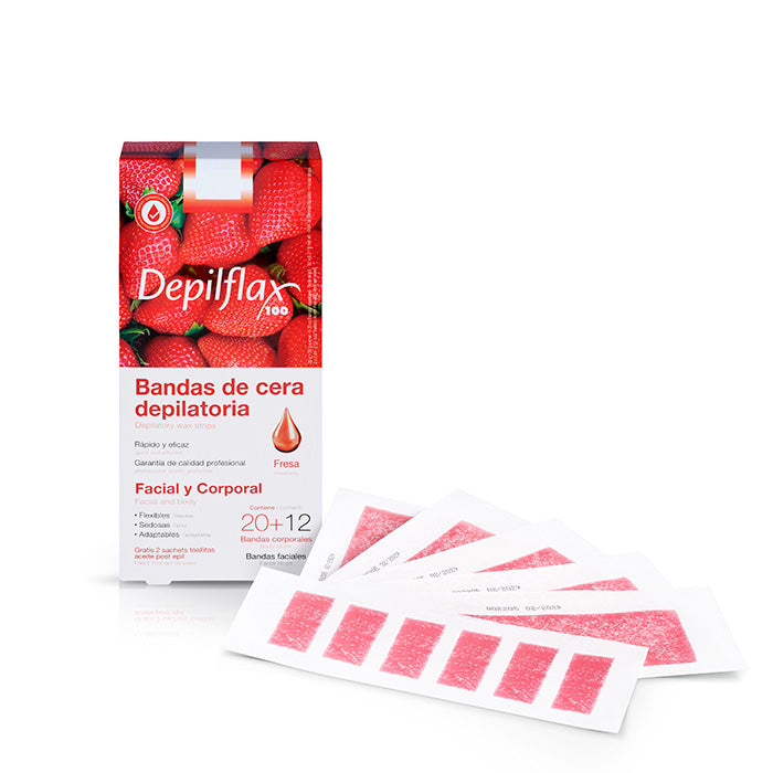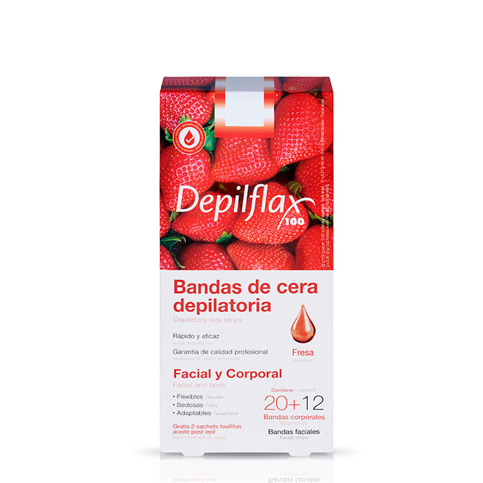 Zachte ontharingswasstrips met professionele garantie en aangenaam aardbij-parfum voor eenvoudige en effectieve ontharing. Met natuurlijke ingrediënten verwijdert u de haren vanaf de wortels, waardoor de huid langer zacht, zijdeachtig en haarvrij blijft. Met resultaten van de eerste toepassing. Voor alle huidtypes, zelfs de meest gevoelige.